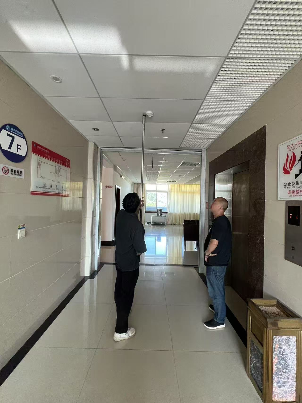 當日,保衛科工作人員嚴格依據相關標準和操作規程,對綜合辦公大樓內部各類消防設施設備開展了全面細致的排查檢測工作。協同火災報警系統維保人員逐項檢測煙感、溫感探測器靈敏度,并對報警主機聯動功能進行專項查驗,確保報警信號精準高效傳輸至消防控制室,為及時識別火情隱患提供技術支撐。針對滅火器材,工作人員逐一對壓力數值、有效期限及布設位置進行核查,對壓力不足及過期失效的滅火器予以更換,確保所有滅火器材處于可靠、完備狀態。在消火栓及噴淋系統檢測環節,工作人員系統開展消火栓水壓達標測試,并對噴淋系統末端試水裝置實施效能檢驗,切實保障供水系統應急處置效能,確保突發火情時能夠迅速有效撲滅火情。此外,相關人員模擬斷電環境,通過測試應急照明持續時長及疏散指示標志清晰度,以確保突發火災情況下能為人員疏散提供清晰有效指引。